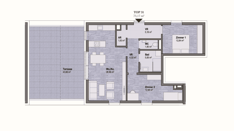 Neubauprojekt: Moderne Penthouse-Eigentumswohnung (80m²) mit großer Terrasse und Lift in Fürstenfeld! Provisionsfrei!