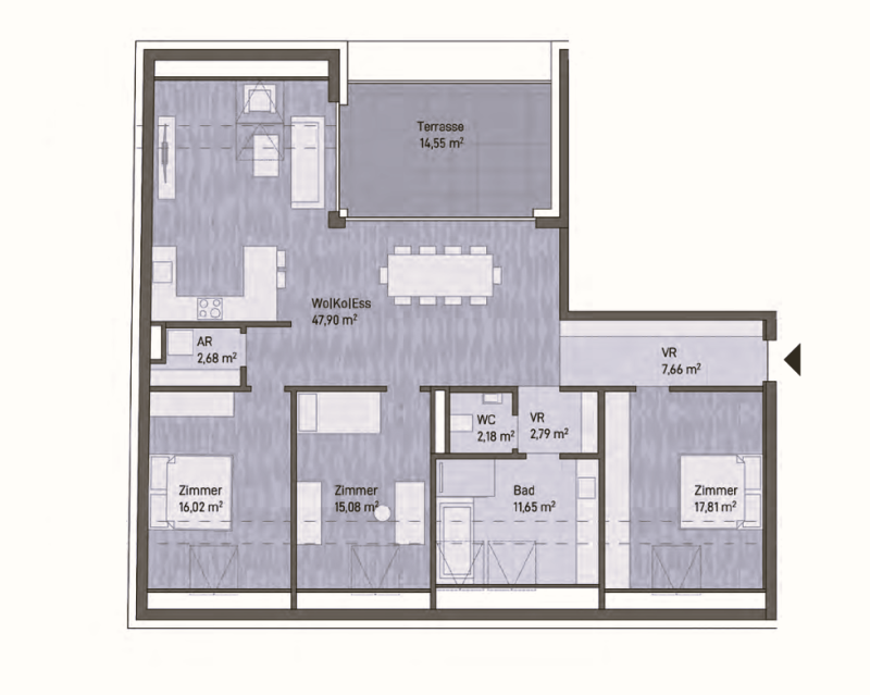 Neubauprojekt: Exklusive Penthouse-Eigentumswohnung (113m²) mit Terrasse in Graz, Gries!